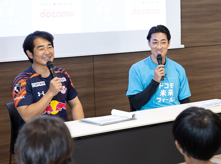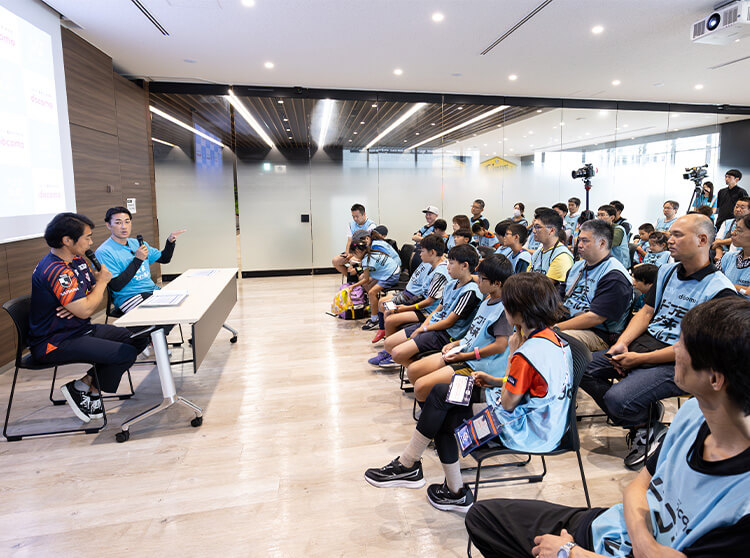 2025年9月13日(土)、ドコモがパートナーを務める「RB大宮アルディージャ」にご協力いただき、プレミアムな体験イベントを開催しました。サッカー好きやプロサッカー選手・プロサッカーの世界を目指す、抽選で当選したサッカー経験者29名の子どもたちを招待して、元プロサッカー選手にサッカーを教えてもらったり、試合前のロッカールームを見学したりと、ここでしか体験できない、「プロサッカーのセカイ」にふれてもらいました。