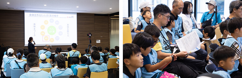 「ジュニアアスリートの成⻑期に必要な栄養について」や、「日常の食事で気をつけたいポイント」についてお話しいただき、「改めて栄養について学べてとてもためになりました」と保護者のみなさまから大好評でした!